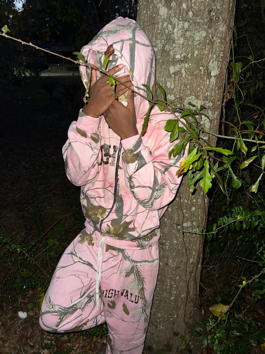 Sold outPink Skimask camo zip up set
