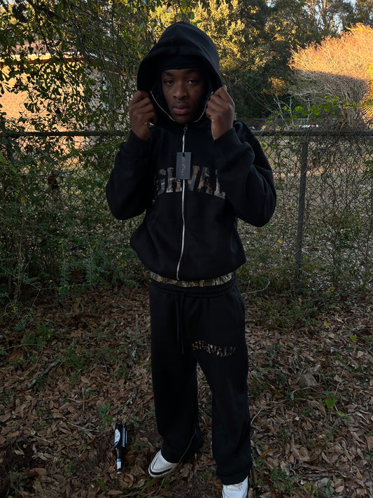 Sold outBlack Skimask zip up set